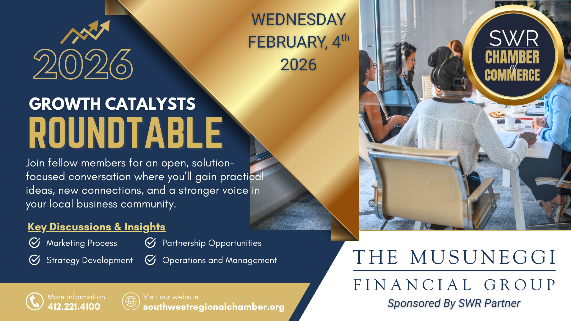This Growth Catalyst roundtable creates a collaborative space to share real-world challenges, exchange proven strategies, and gain practical insights you can apply immediately. Attendees will leave with fresh ideas, new perspectives, and valuable peer connections that support smarter decision-making, improved operations, and long-term business success.