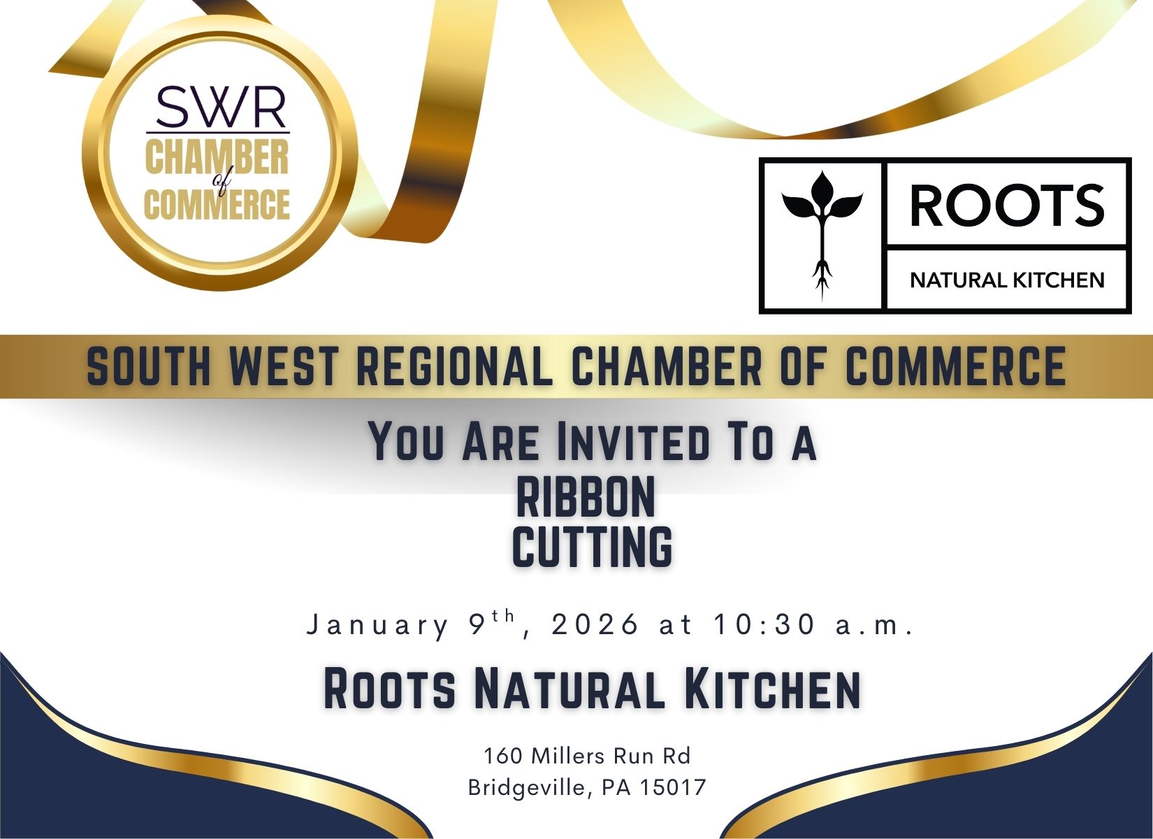 Join us this January as we officially welcome Roots Natural Kitchen to the community with a celebratory ribbon cutting! Be among the first to experience their fresh, flavorful, and health-focused menu while meeting the team behind the mission to make wholesome food accessible and delicious. Help us celebrate their grand opening, connect with fellow community members, and give a warm chamber welcome to one of our newest local businesses!